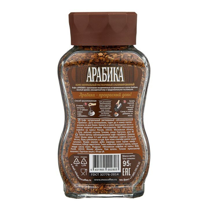 Кофе растворимый московская кофейня на паяхъ "Арабика", сублимированный, 95 г, стеклянная банка В комплекте: 1шт.