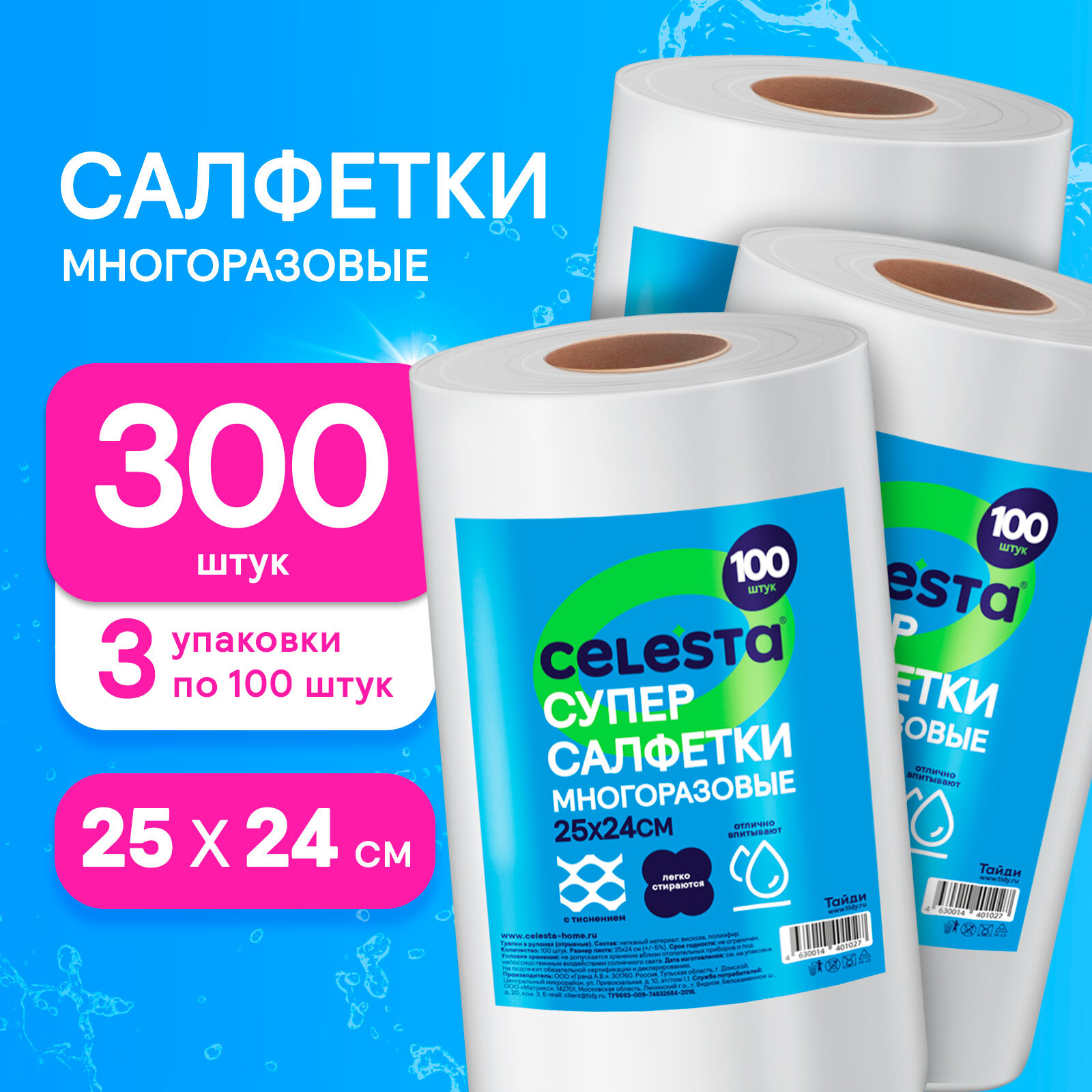 Ниже Вы можете прочитать отзывы на Салфетки для уборки Celesta универсальные в рулоне для кухни, ванной и дома набор 300 штук, ознакомится с подробными характеристиками, посмотреть интересные обзоры и фотографии на Салфетки для уборки Celesta универсальные в рулоне для кухни, ванной и дома набор 300 штук.