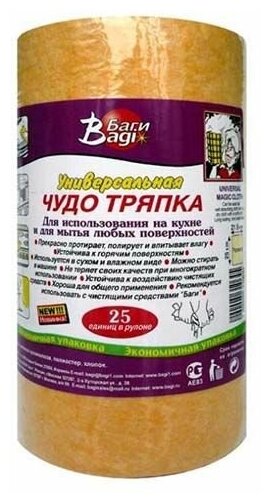 Салфетка для уборки Bagi Чудо-тряпка, универсальная, 25 листов в рулоне интересное: