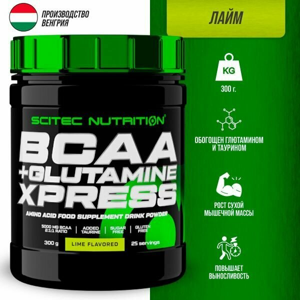 BCAA Scitec Nutrition BCAA+Glutamine Xpress, лайм, 300 гр.