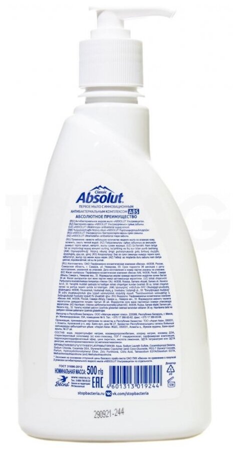 Купить Absolut Антибактериальное жидкое мыло ABS ультразащита, 500 г 5212/12