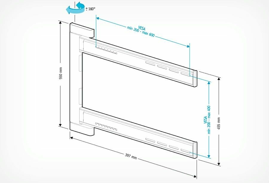 Кронштейн для LED-телевизора Holder LEDS-7023 (40-65", 45 кг, угол поворота 160*, от стены 27 мм)