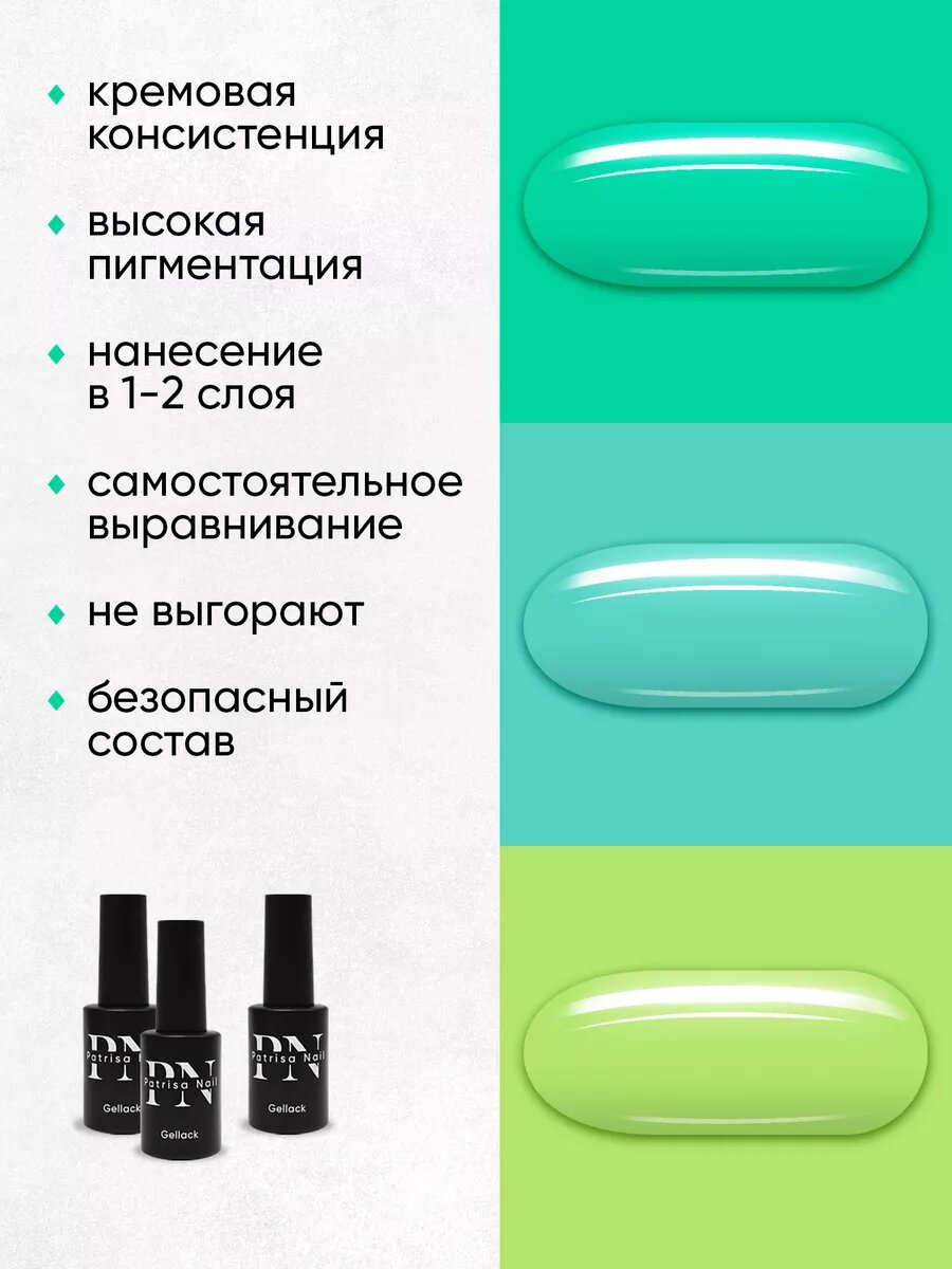 Гель-лак Patrisa Nail №130 Pina Colada GP30 Сочный мятный, 8 мл
