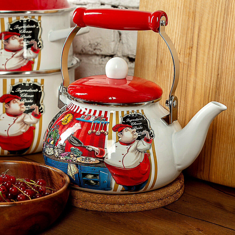 Чайник эмалированный Vetta Повар 894-442 2.5 л (белый/красный)