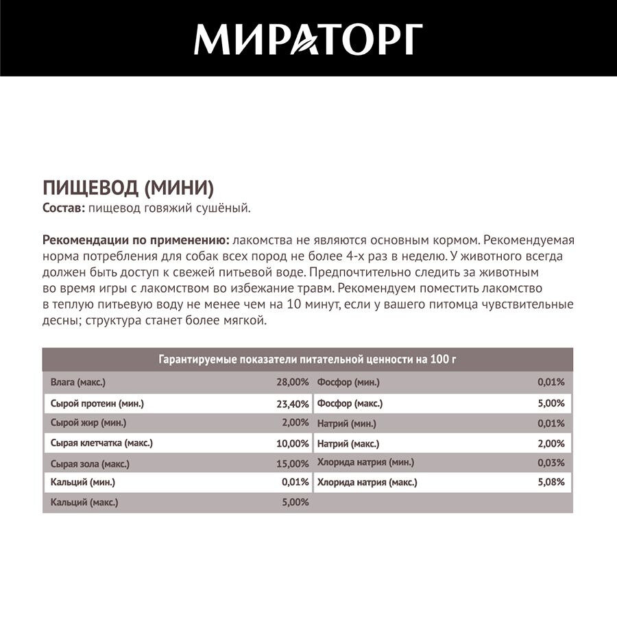Мираторг Лакомство для собак пищевод ( мини ) говяжий 1010016056 0,06 кг 59577