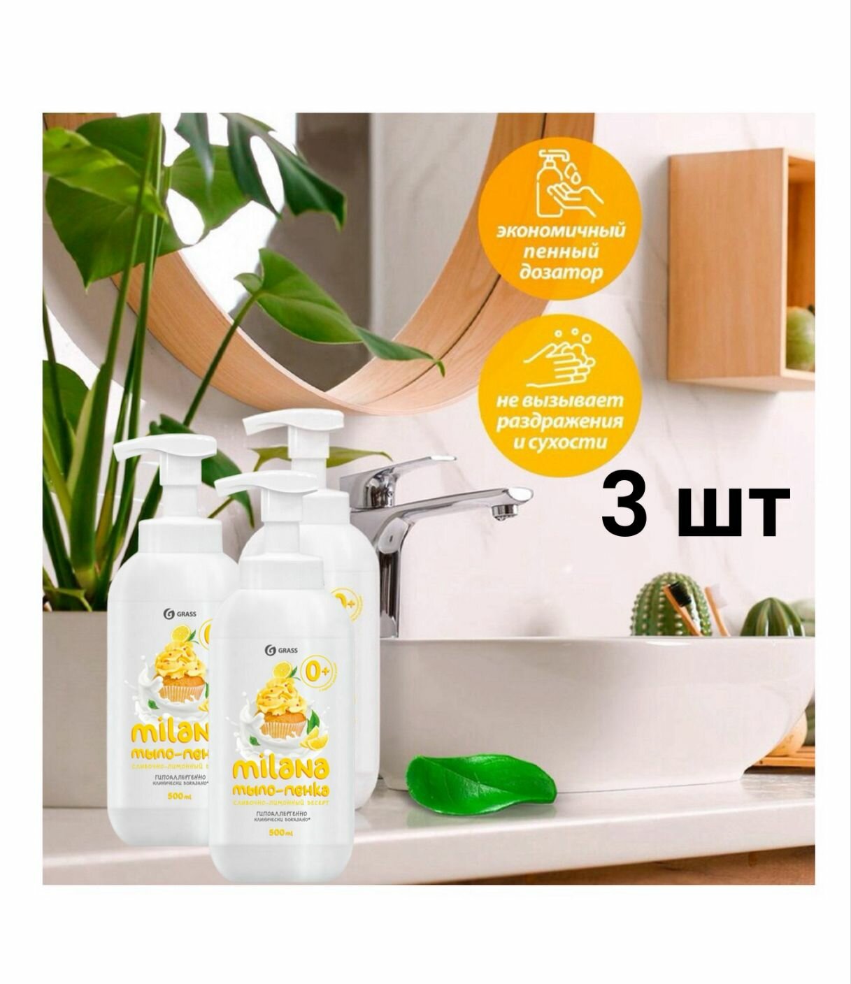 Grass Мыло-пенка Milana сливочно-лимонный десерт, 3 шт., 500 мл