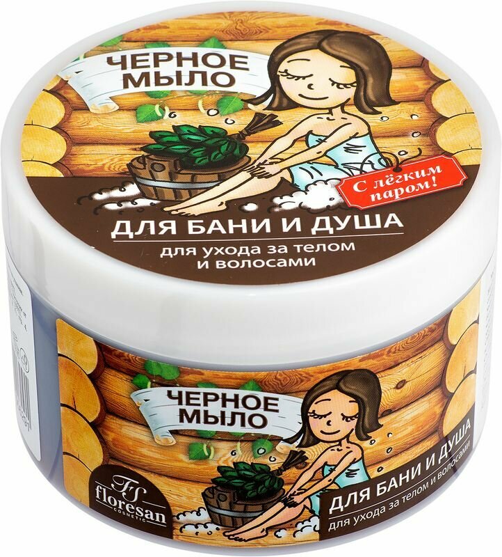 Натуральное таёжное мыло для бани и душа FLORESAN Черное, уход за телом и волосами, 450 мл