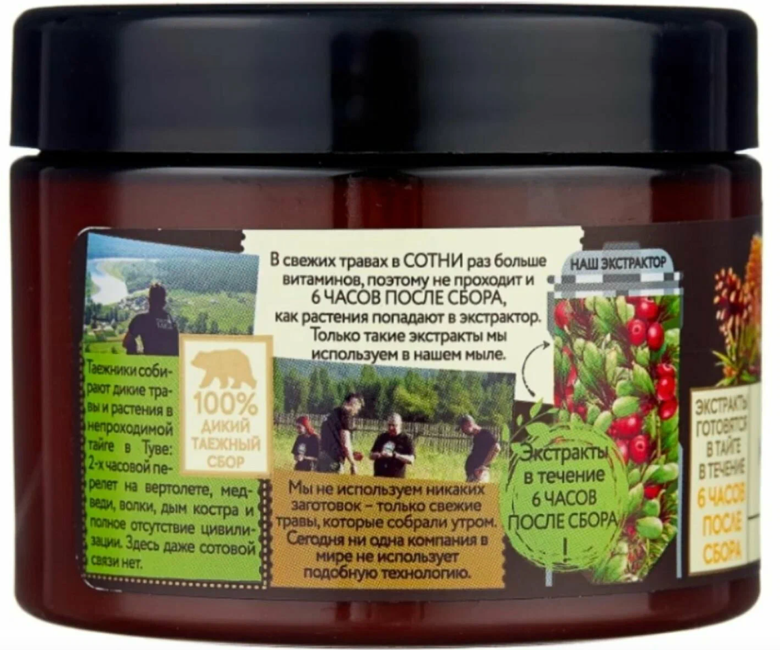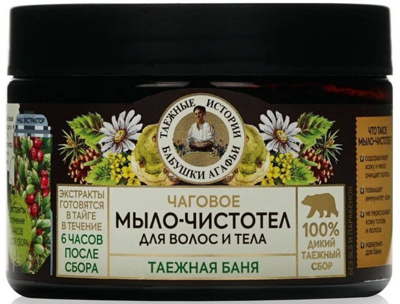 Чаговое мыло-чистотел Рецепты бабушки Агафьи Таежные истории для волос и тела "Таежная баня" 300 мл