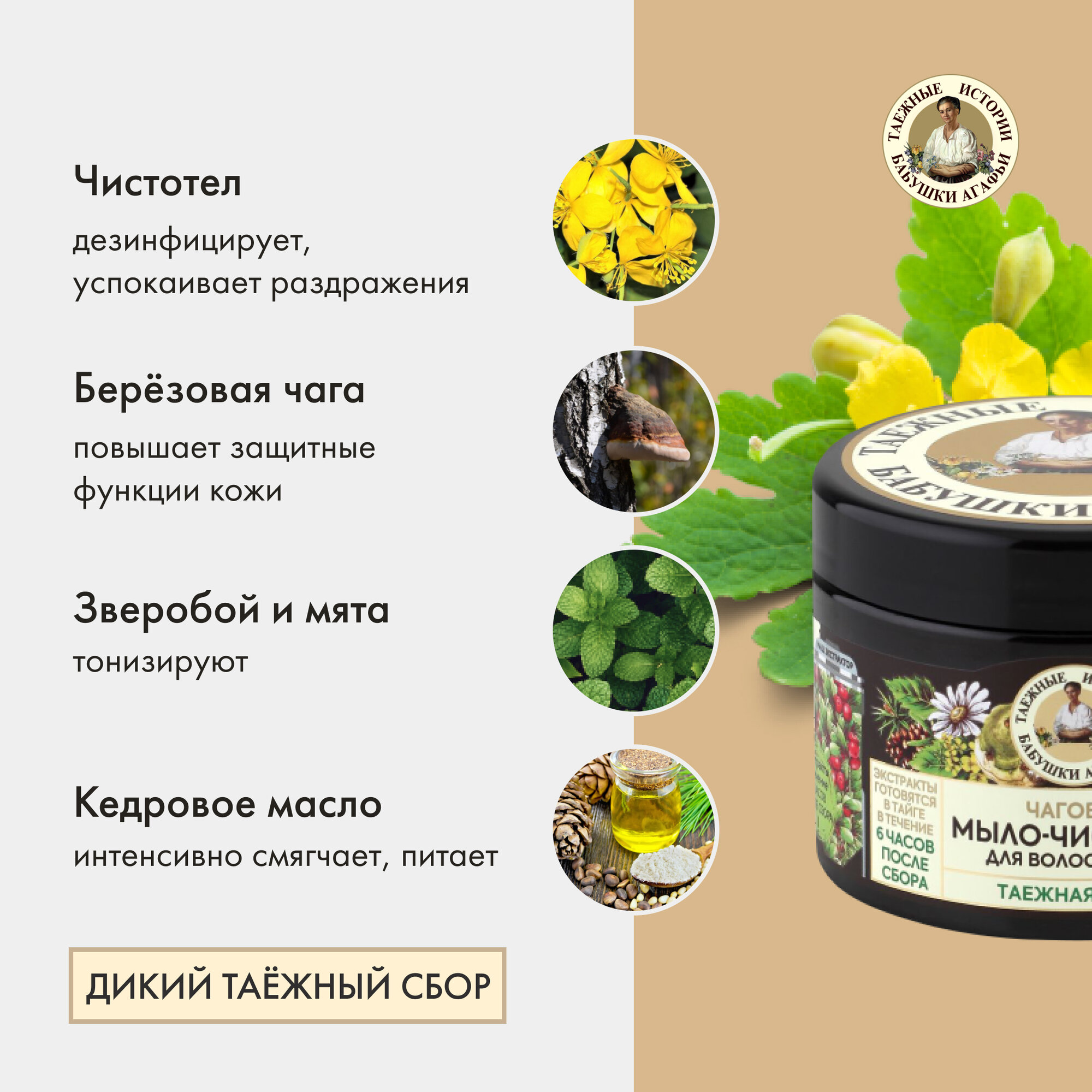 Мыло-чистотел для волос и тела рецепты бабушки агафьи , Таежные истории Чаговое, 300 мл