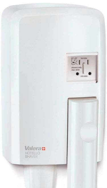 Настенный фен с розеткой для электробритвы для помещений с повышенной влажностью Valera Hotello Super AC Shaver 1400W 832.02/RT