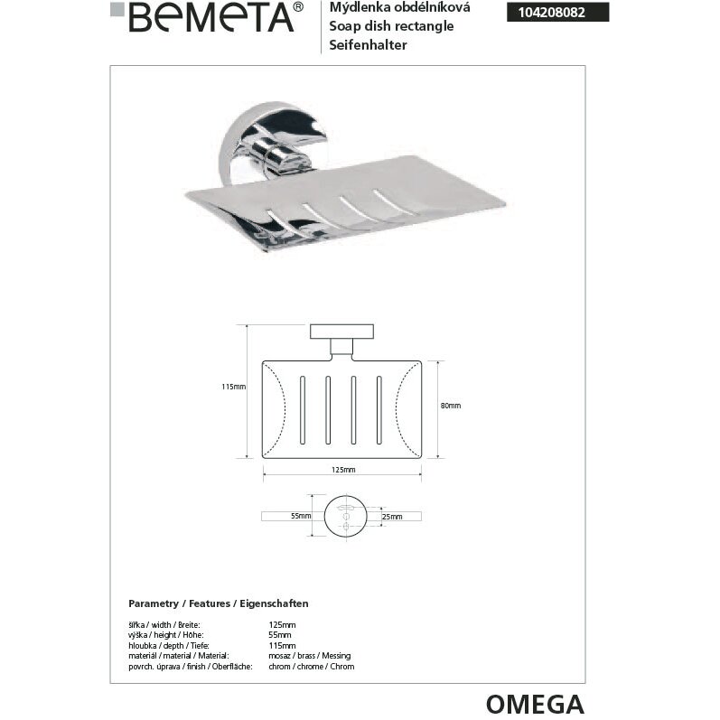 Мыльница Bemeta Omega 104208082,прямоугольная, хром