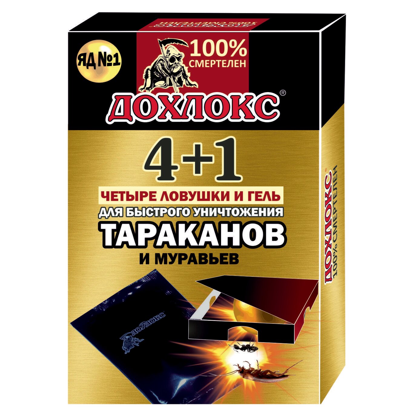 Дохлокс 4+1 ловушки и гель для быстрого уничтожения тараканов
