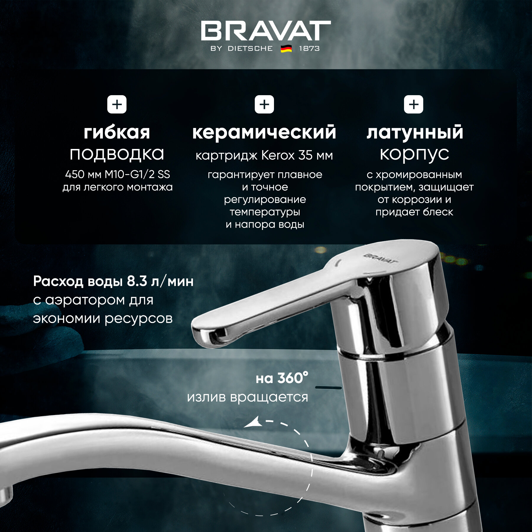 Смеситель Bravat Stream F73783C-2 для кухонной мойки интересное: