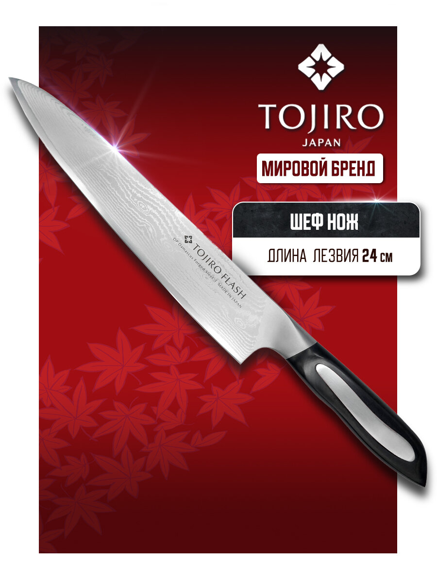 Tojiro Нож кухонный поварской flash длина лезвия 240 мм, сталь vg10, 63 слоя, рукоять микарта FF-CH2 .