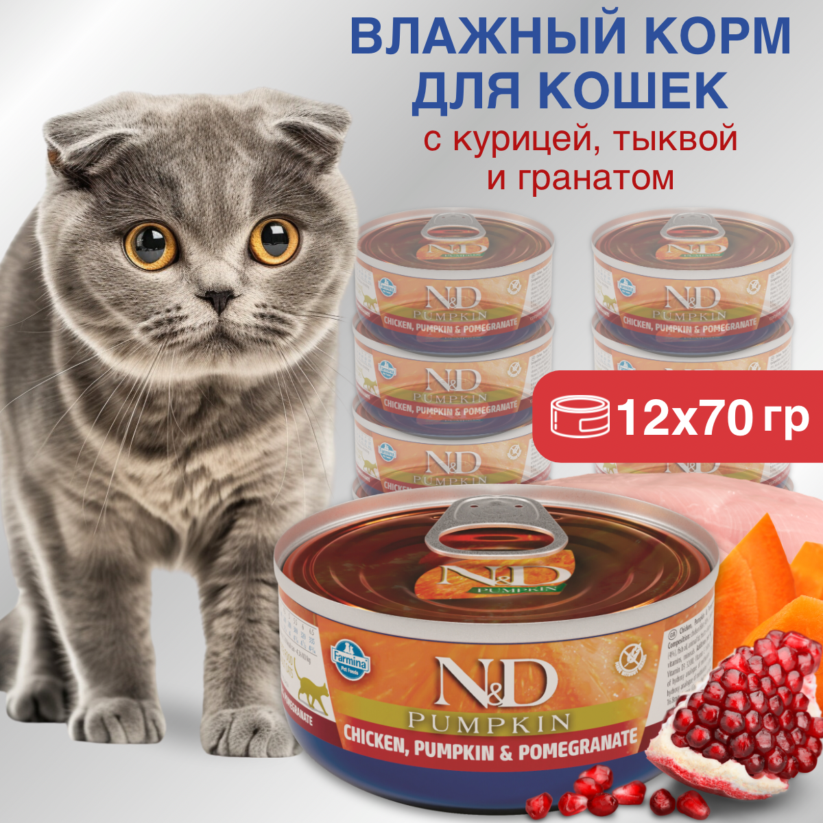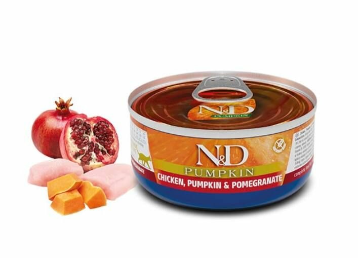 Farmina N&D Cat Pumpkin консервы для взрослых кошек Курица, гранат и тыква, 70 г. упаковка 24 шт