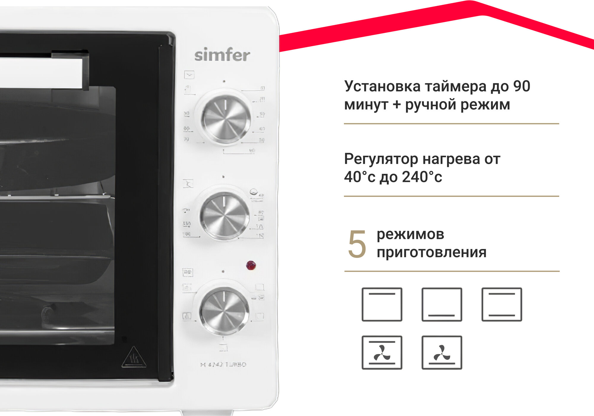 Мини-печь Simfer M4242 серия Albeni Plus, 5 режимов работы, конвекция, 2 конфорки