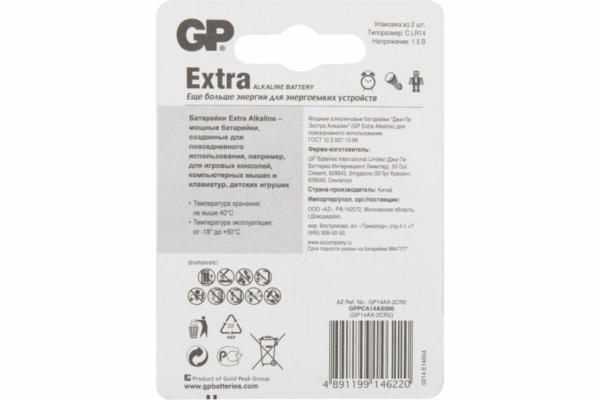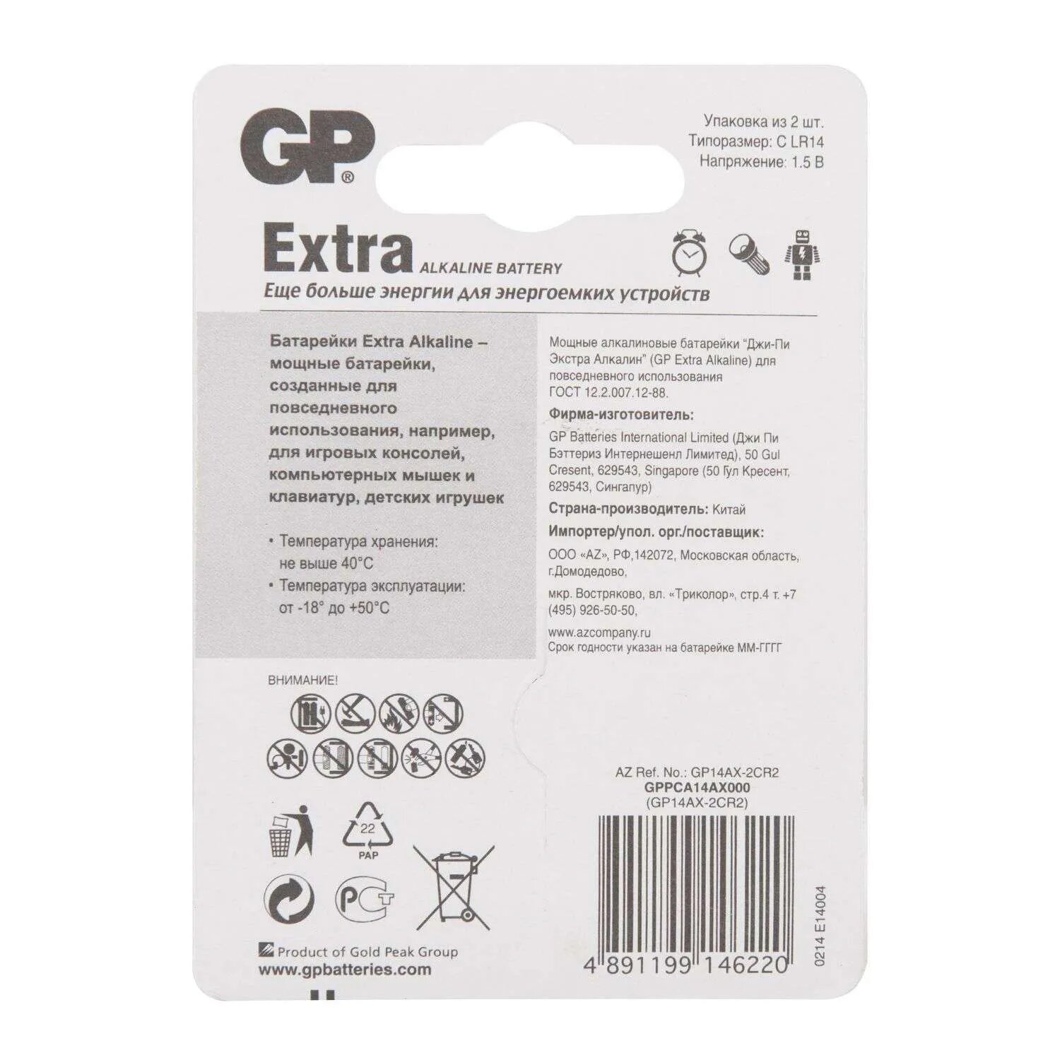 Батарея GP Extra Alkaline C (LR14), 2 шт (14AXNEW-2CR2)