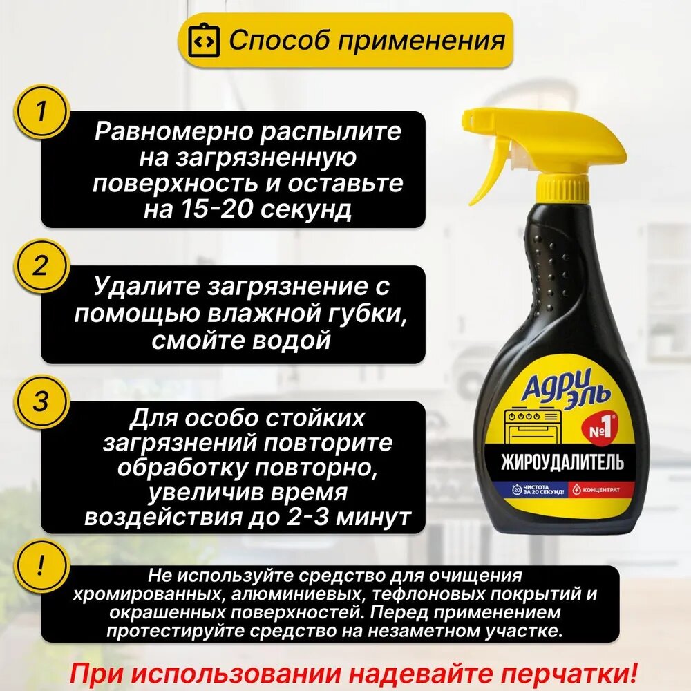 Адриэль Спрей для чистки плит, СВЧ, грилей, 500 мл