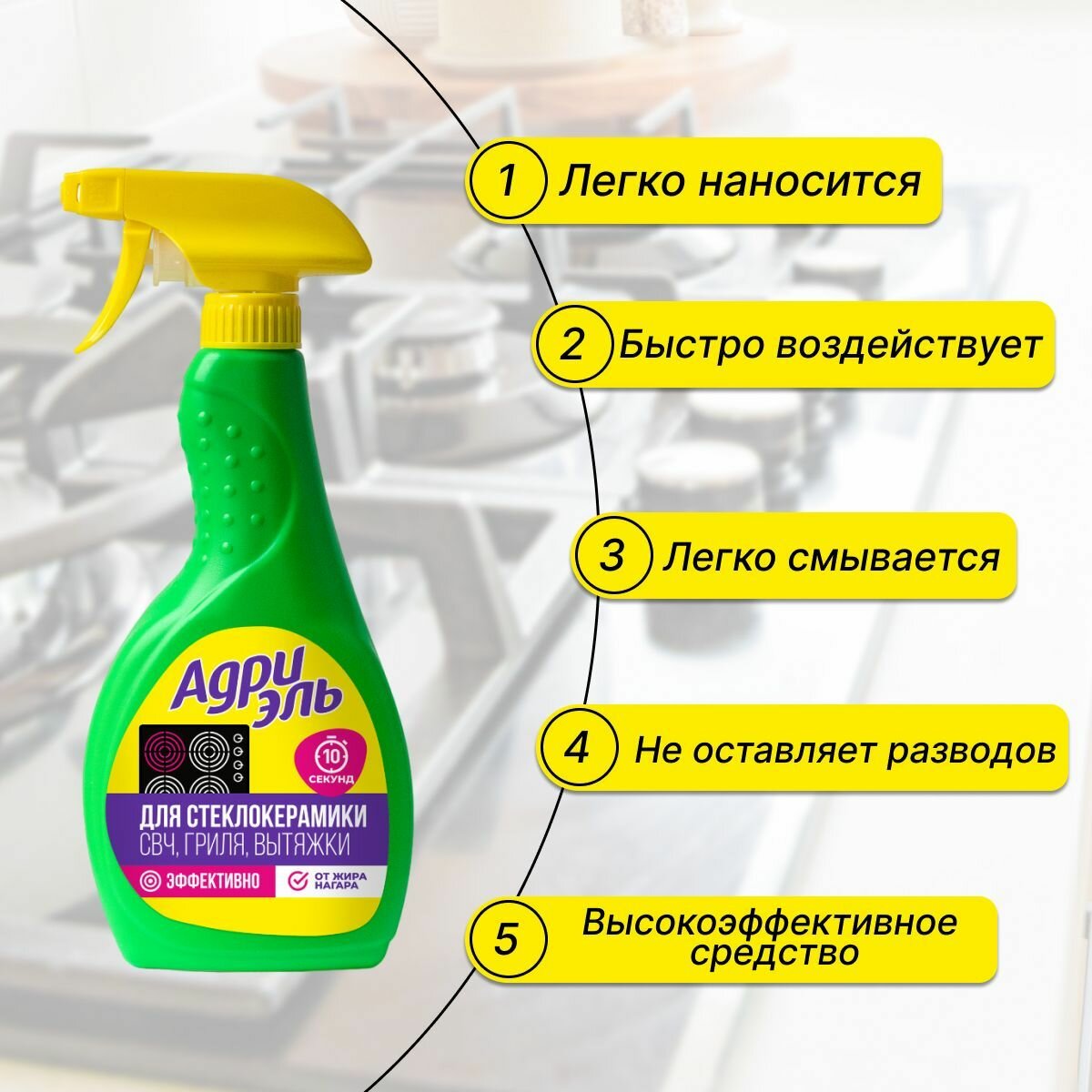 Адриэль спрей для стеклокерамических плит, духовок, грилей, СВЧ-печей, 500 мл