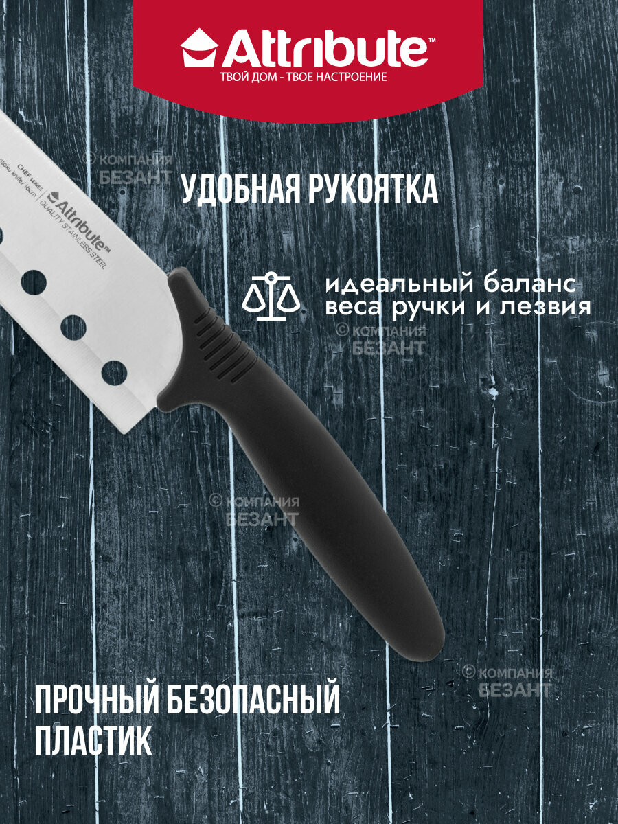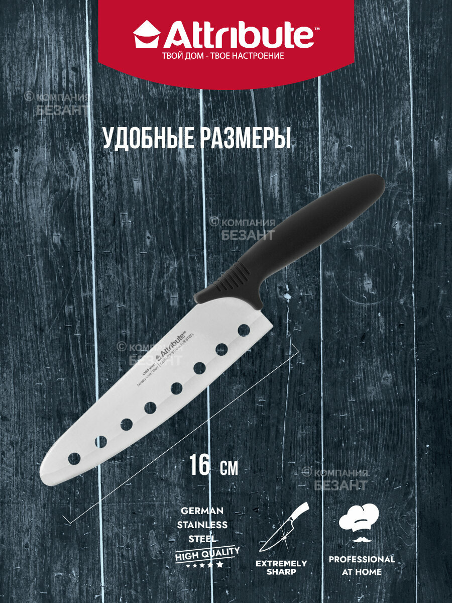 Нож сантоку ATTRIBUTE "CHEF" 16см, нержавеющая сталь/пластик