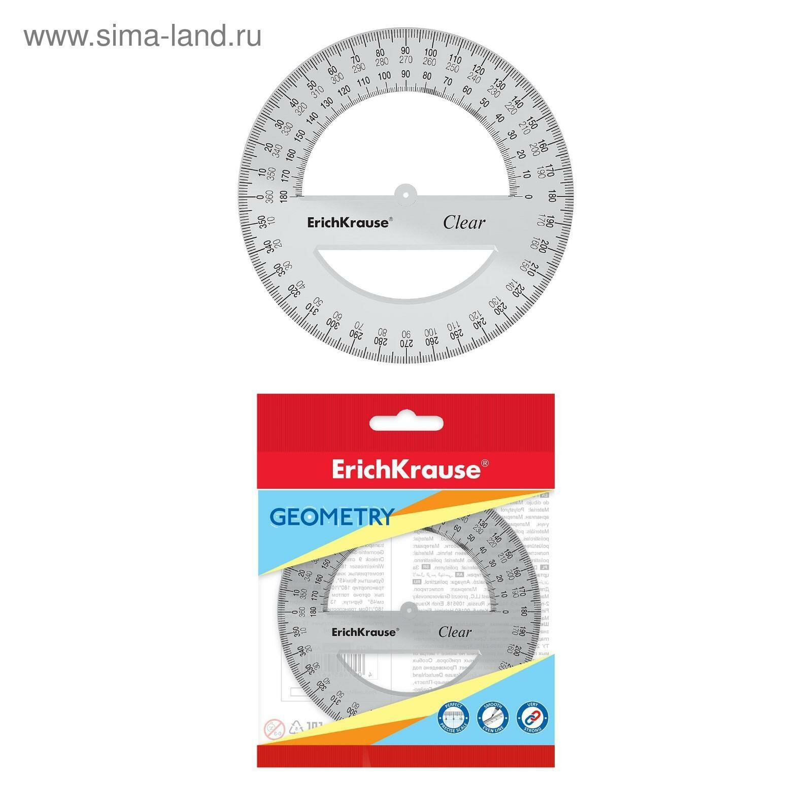 Транспортир 12 см ErichKrause "Clear", 360°, прозрачный интересное: