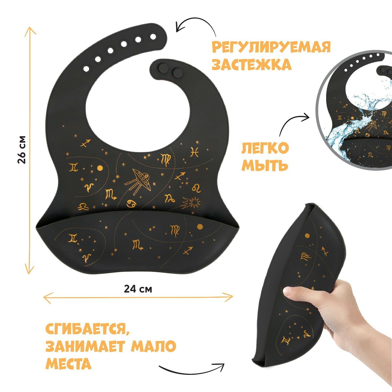 Купить Mum&Baby Нагрудник для кормления/слюнявчик непромокаемый "Гороскоп", силиконовый с карманом, цвет серый