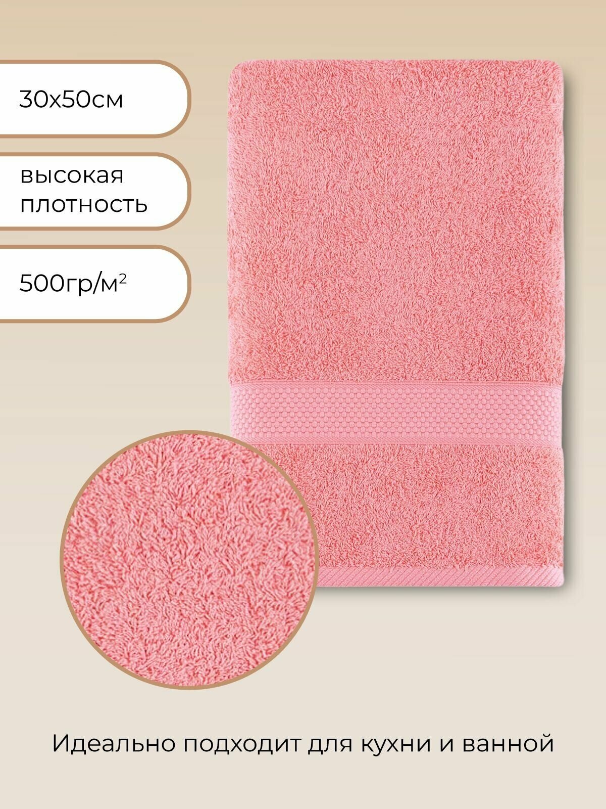 Полотенце банное махровое 30х50 Miranda Soft для рук и лица, сухая роза
