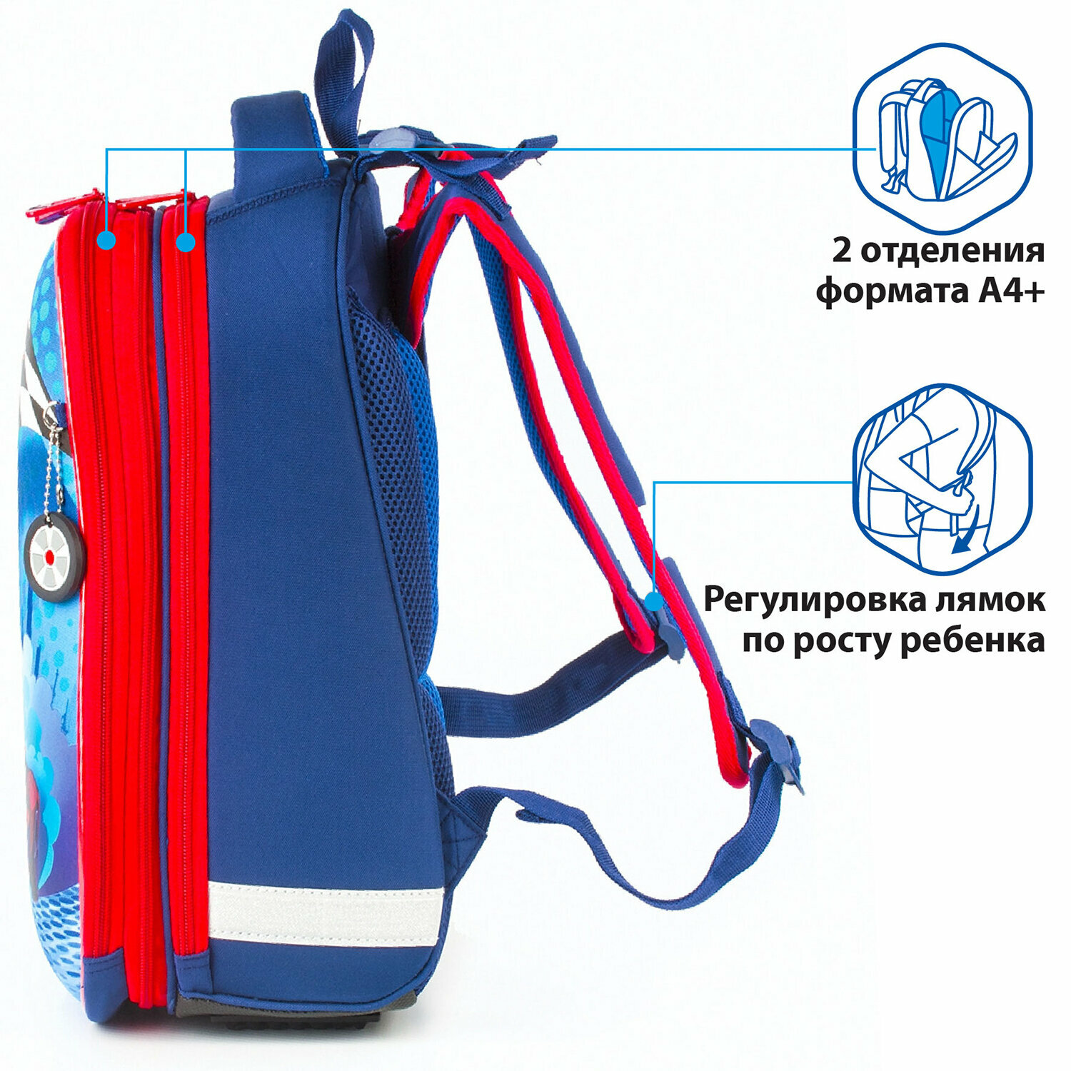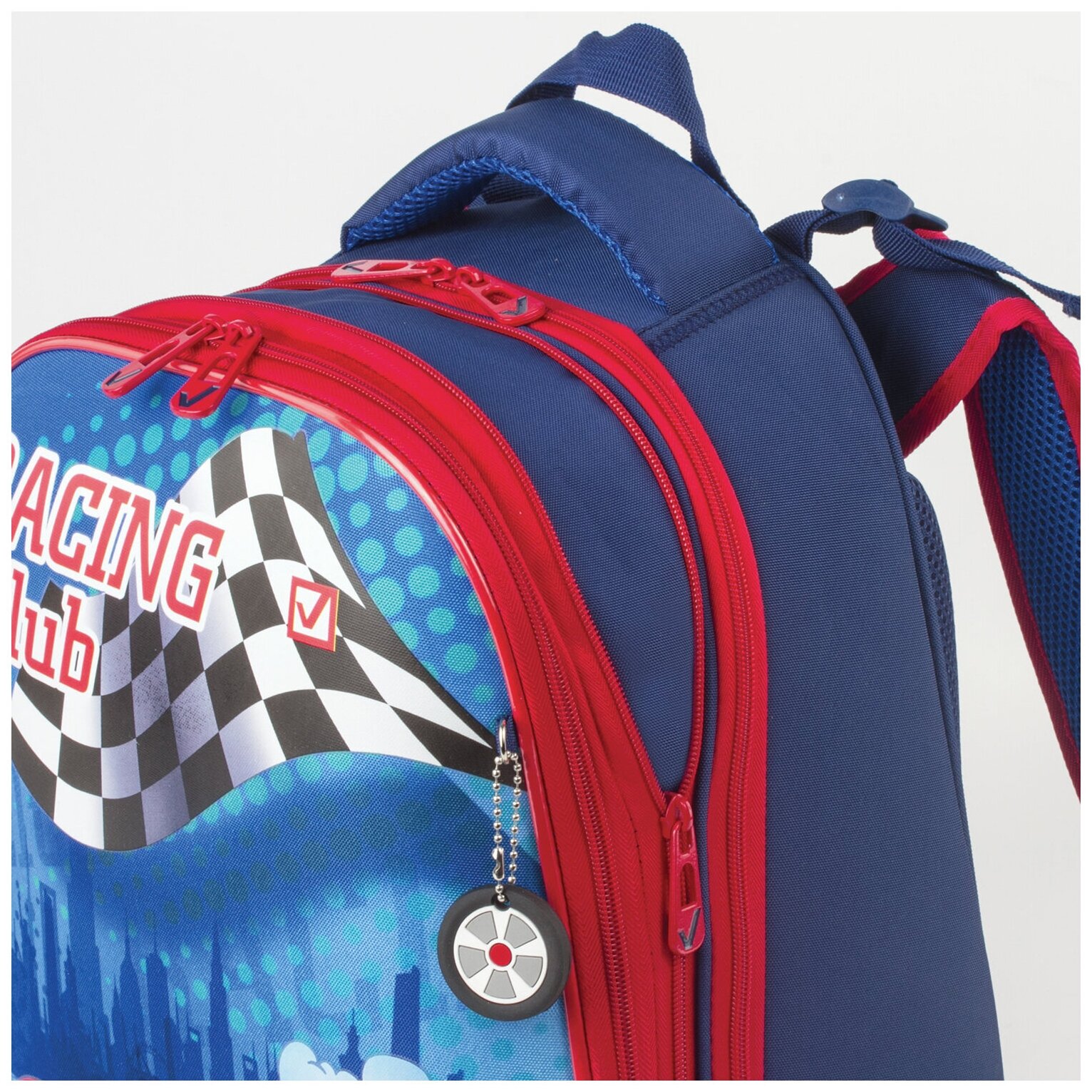 Ранец школьный (рюкзак) Brauberg PREMIUM, с брелоком, Гоночный клуб, 38х29х18 см (227819)