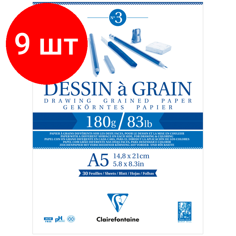 СохранитьКомплект 9 шт, Скетчбук 30л., А5 Clairefontaine "Dessin a grain", на склейке, мелкозернистая, 180г/м2 интересное:
