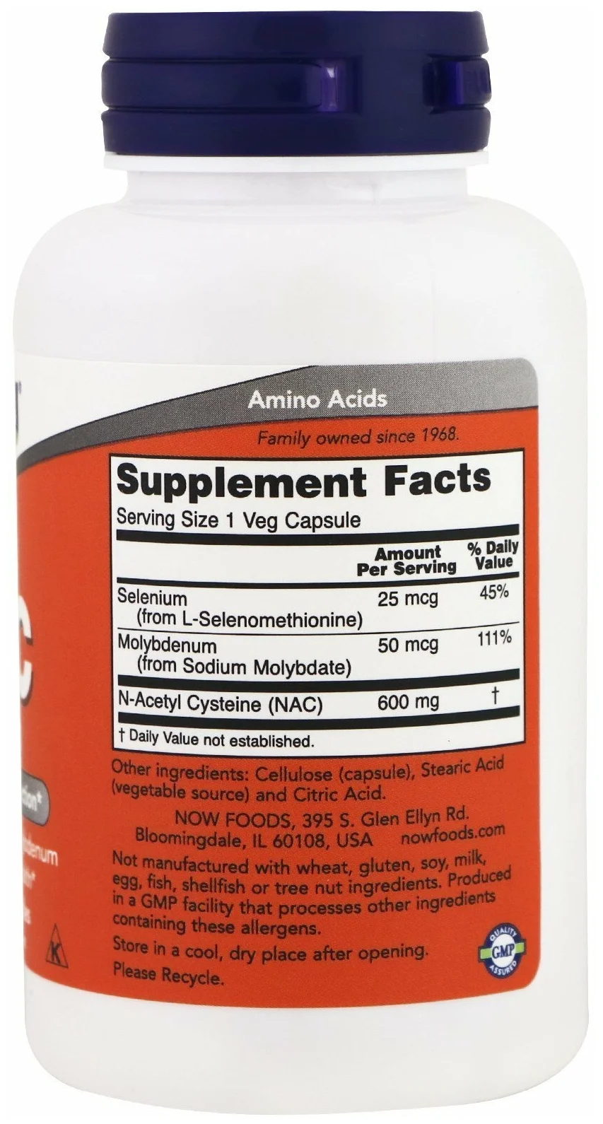 NOW NAC 600 мг with Selenium and Molybdenum (100 капсул) - N-ацетил цистеин плюс селен и молибден