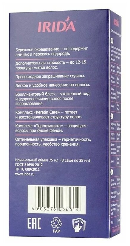 СохранитьIRIDA Шампунь оттеночный для волос, Горький шоколад, 75 мл / интересное: