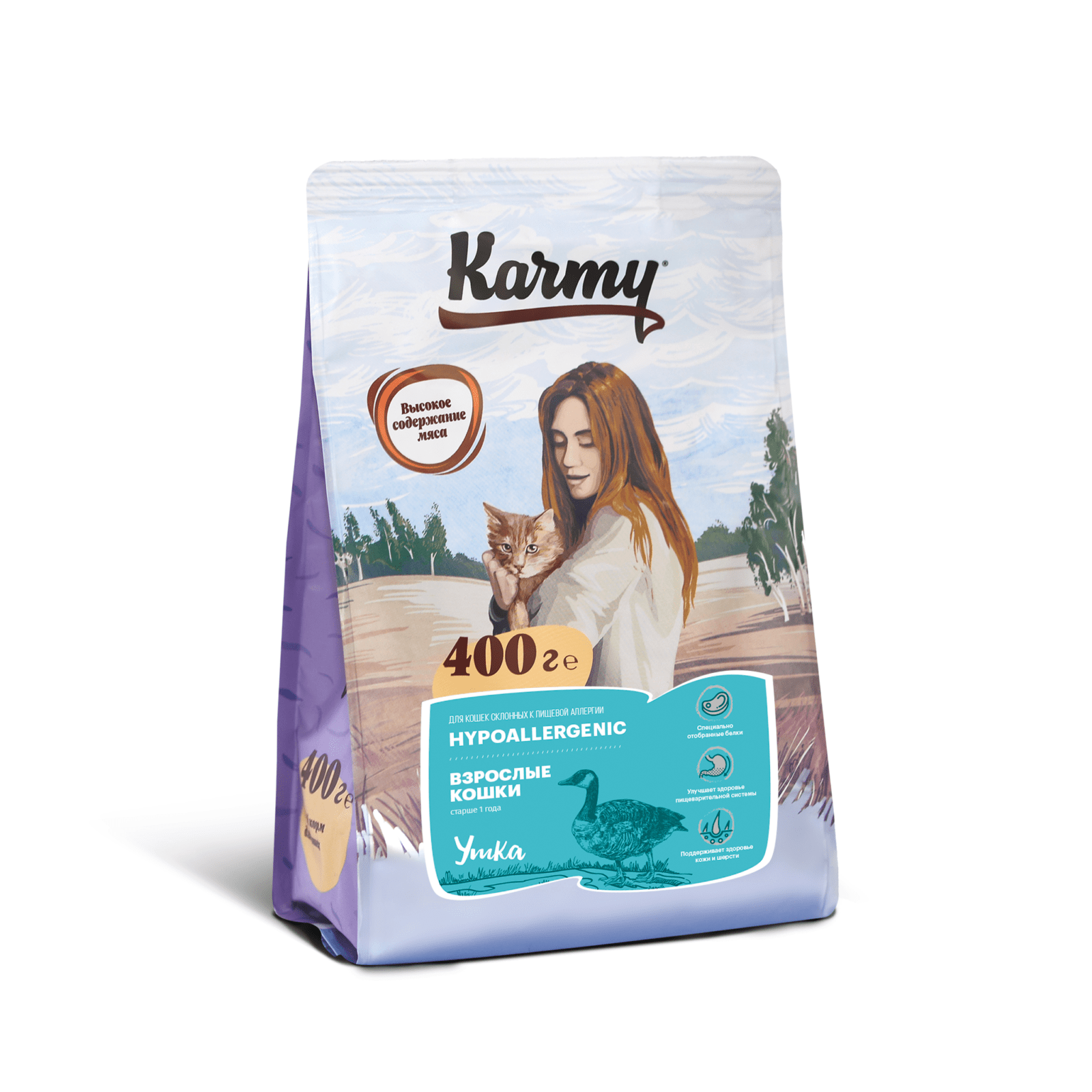 Karmy Hypoallergenic Утка корм для аллергичных кошек от 1 года, 0,4 кг