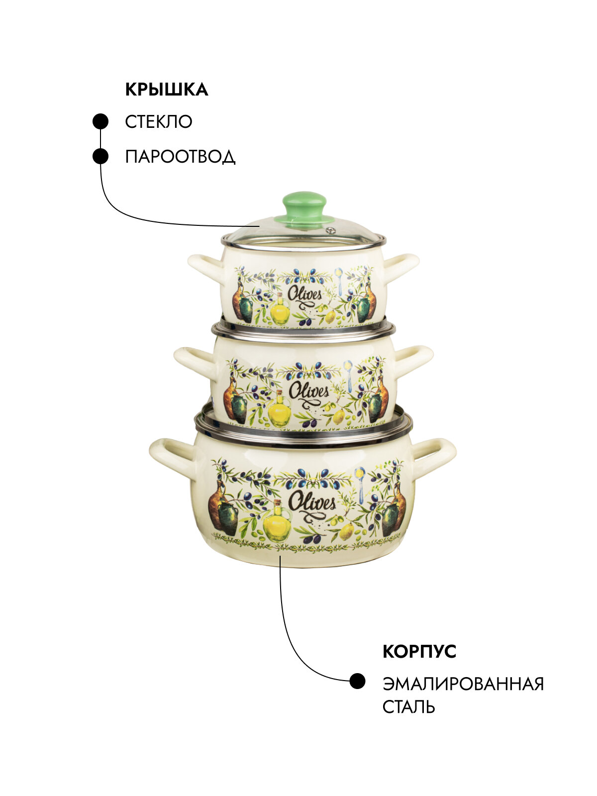 Набор кастрюль Metrot Олива, с крышками, эмалированная сталь интересное: