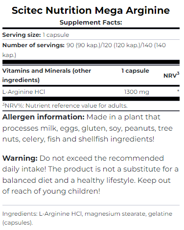 Купить Scitec Nutrition Mega Arginine 1300 mg (Мега Аргинин 1300 мг в капсуле) 140 капсул (Scitec Nutrition)