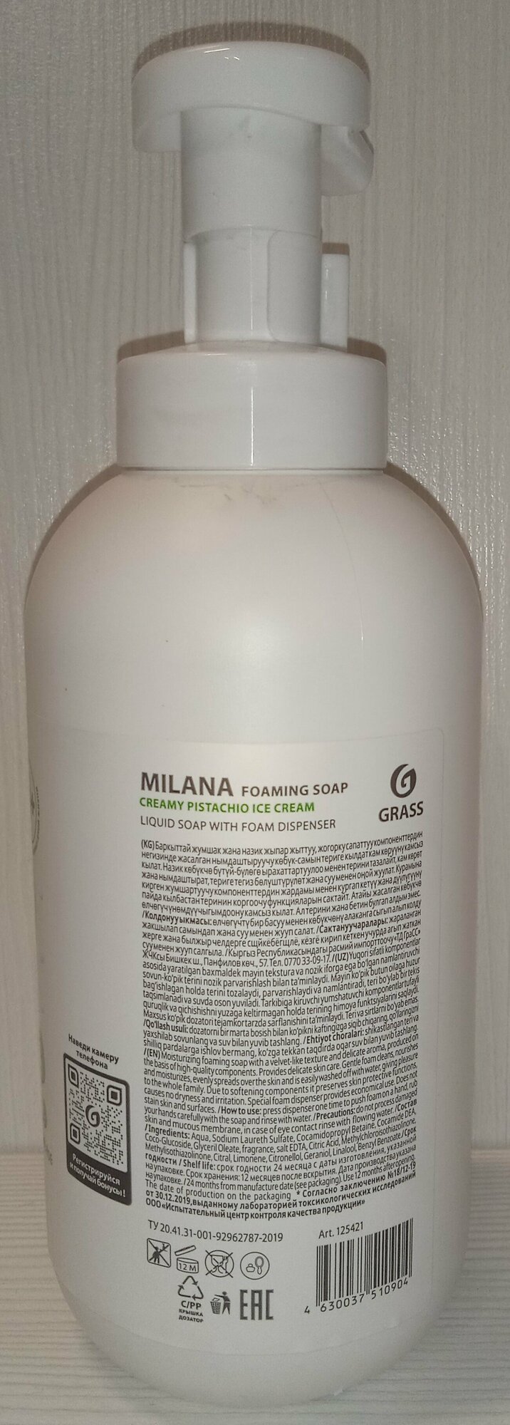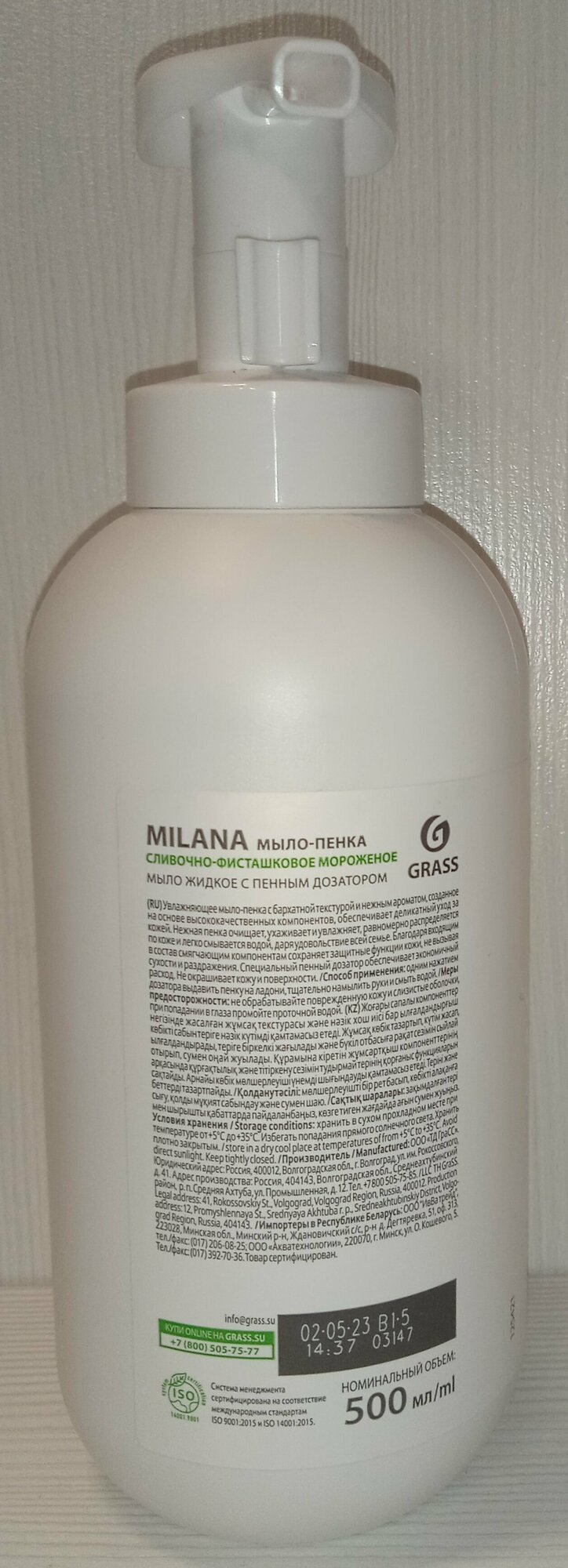 GRASS Жидкое пенка-мыло Grass Milana "Сливочно-фисташковое мороженое", 500 мл