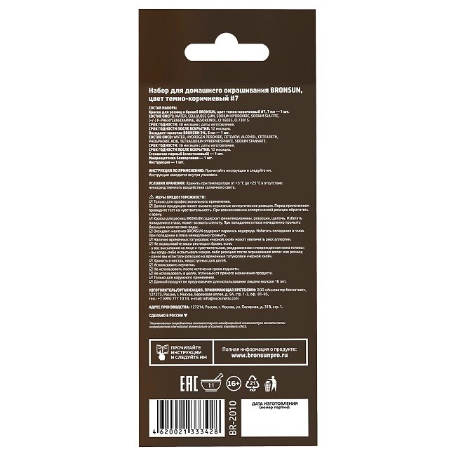 Купить Набор для домашнего окрашивания BRONSUN (Бронсан), цвет темно-коричневый #7 new
