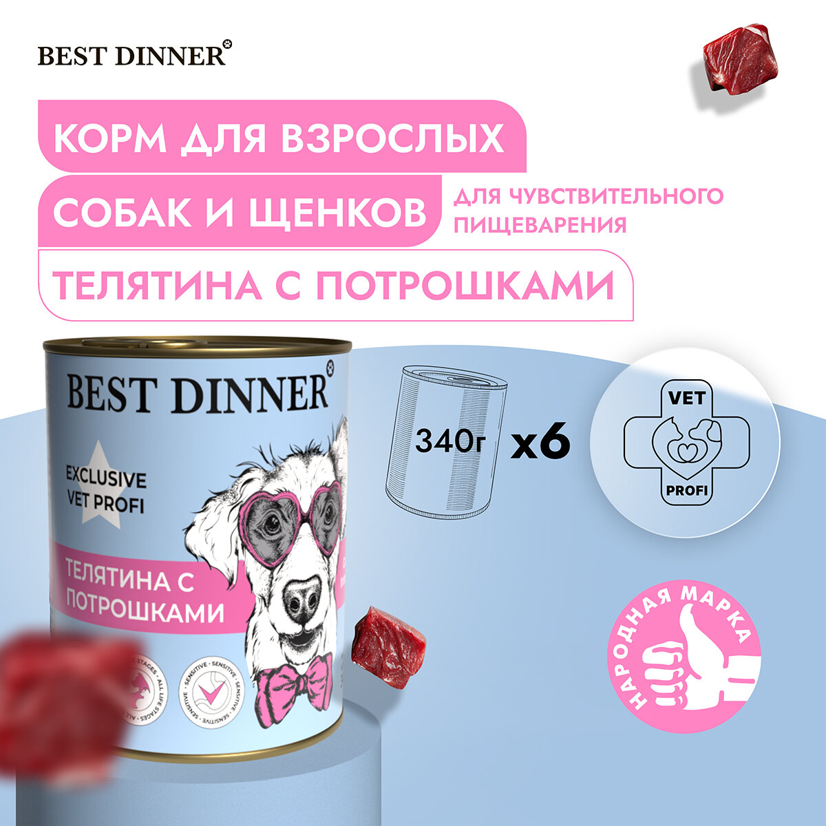Бест Диннер Best Dinner консервы для собак Exclusive Gastro Intestinal, телятина с потрошками, 340 гр. по 6 шт.