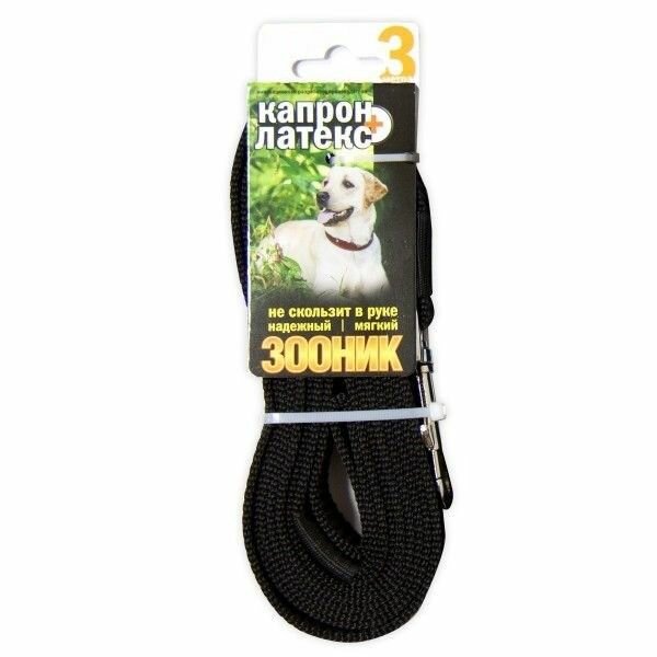 Поводок зооник капроновый с двойной латексной нитью черный для собак (3 м/20 мм)
