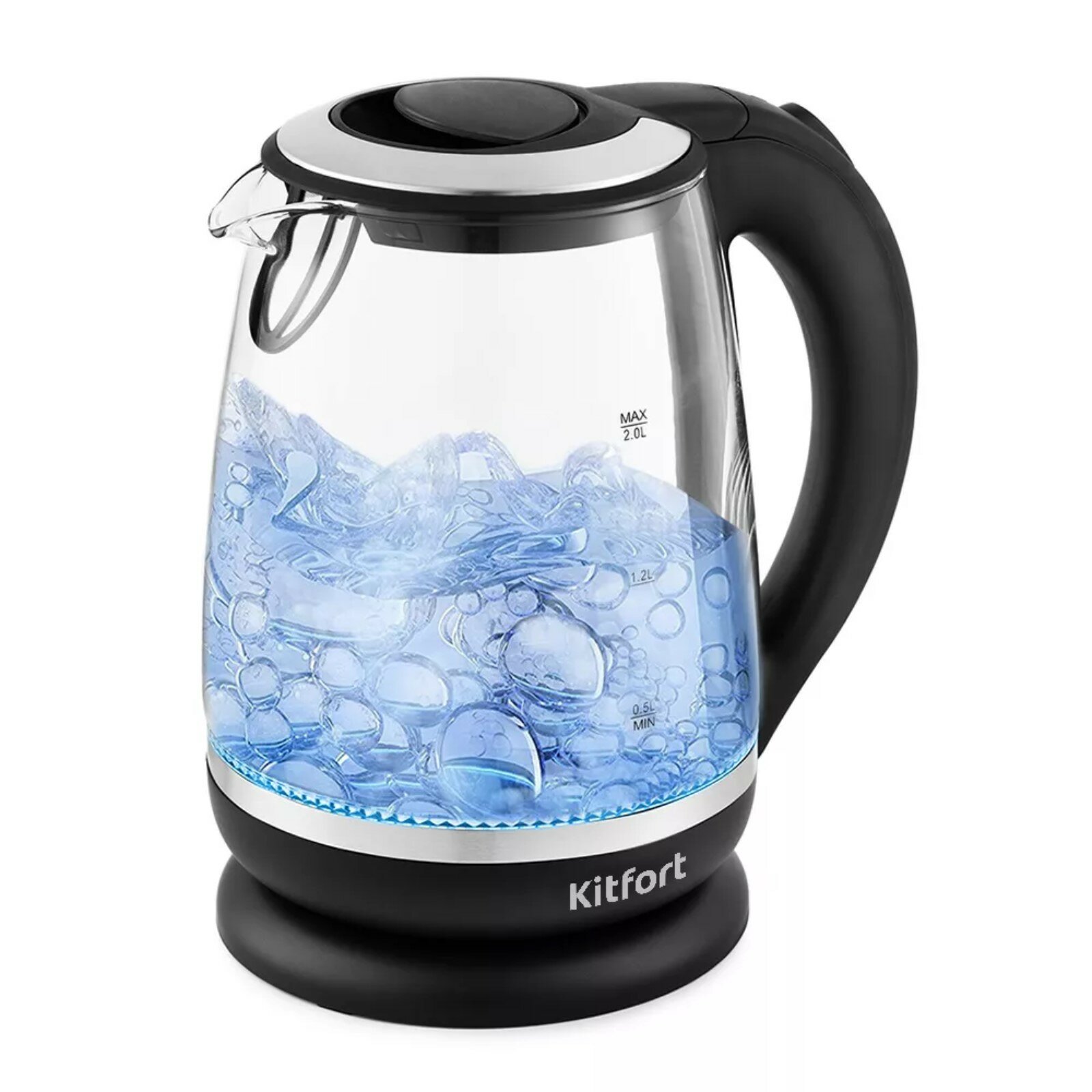 Купить Чайник электрический Kitfort KT-655, стекло, 1.5 л, 2200 Вт, чёрно-серебристый