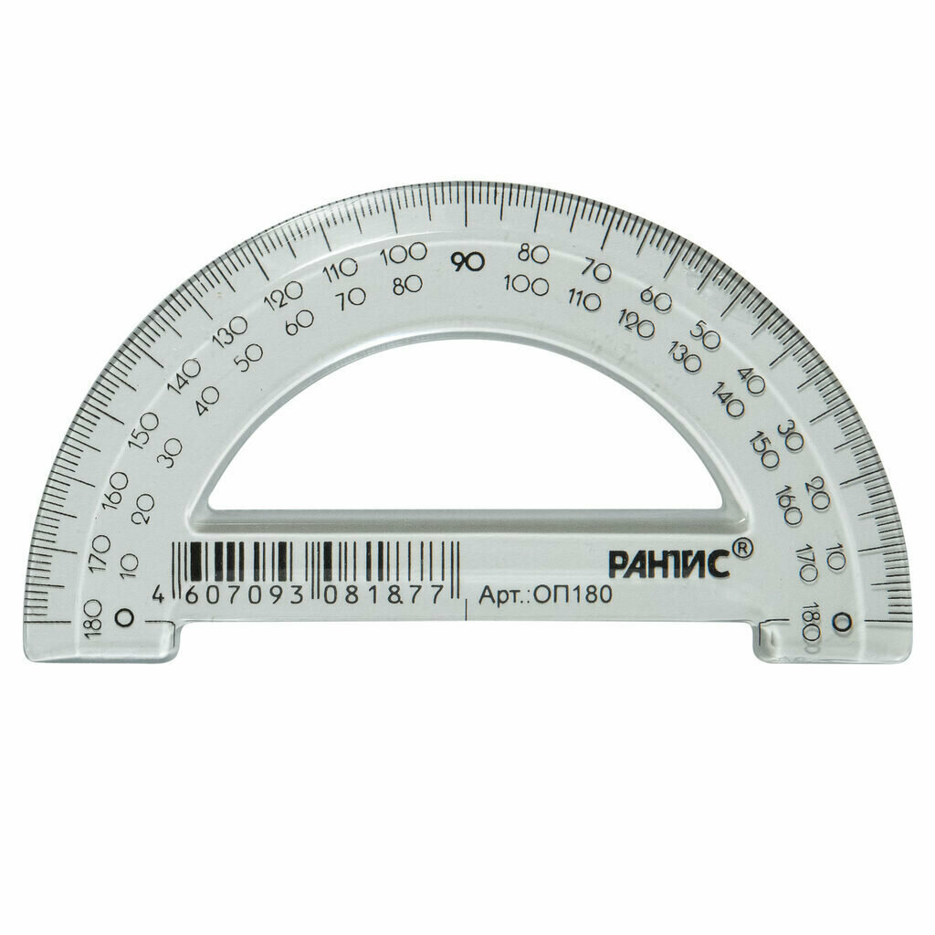 Транспортир, из пластика, прозрачный, 180 градусов, 1 шт