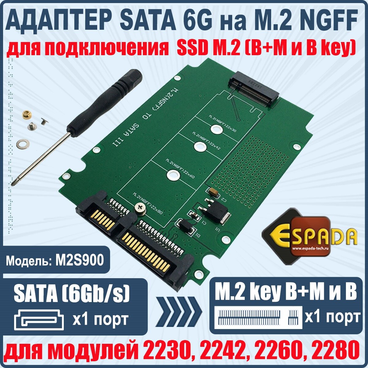 Переходник для подключения SSD с разьемом M.2 NGFF к разъему SATA 6G на вашем устройстве, модель M2S900, Espada интересное: