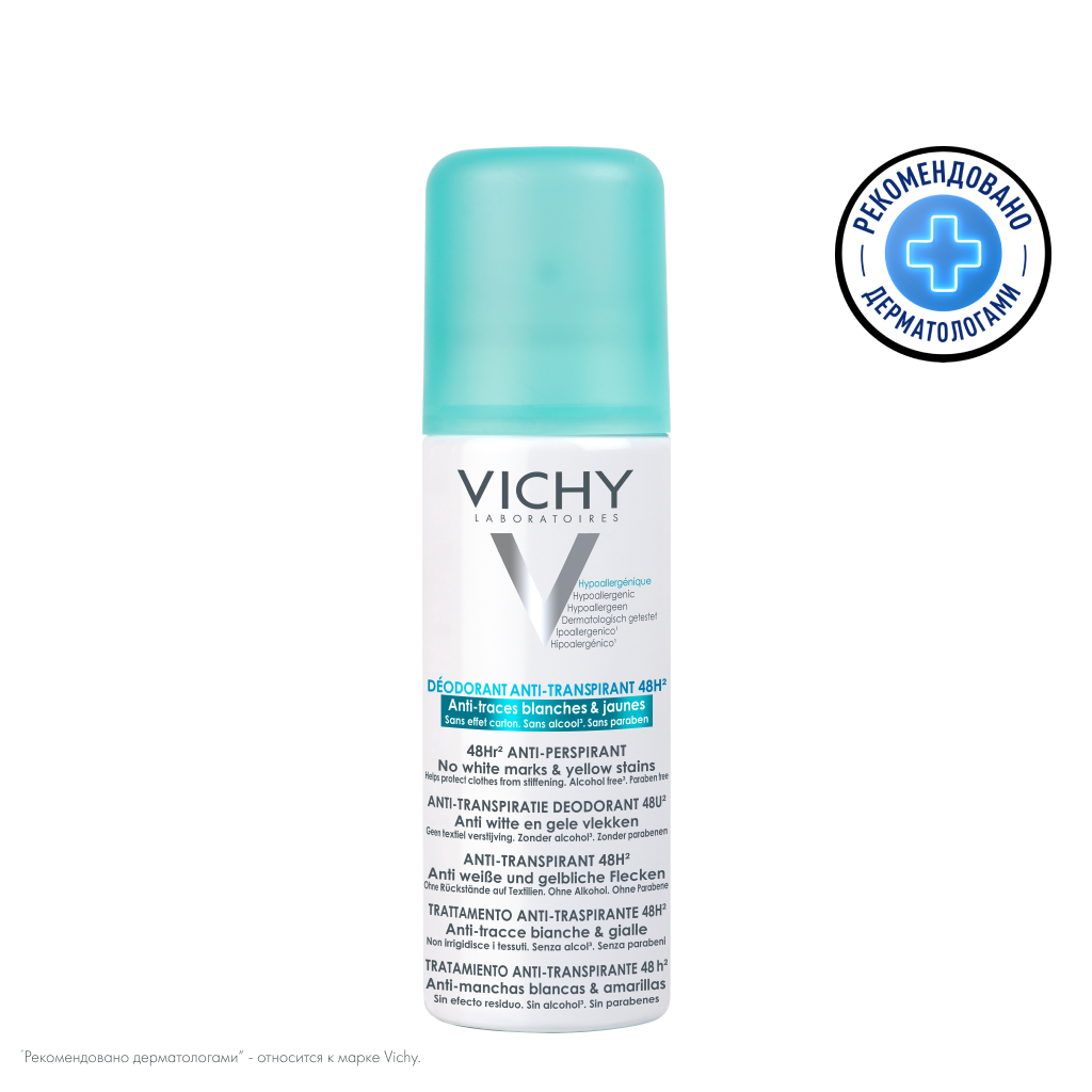 Дезодорант-антиперспирант спрей Vichy против белых и желтых пятен, 48 ч, 125 мл