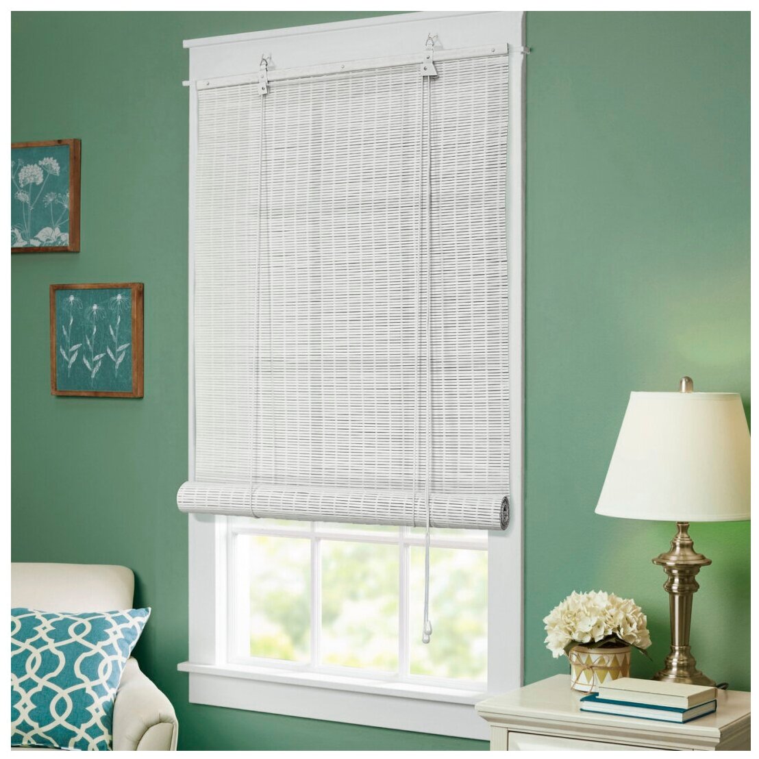 Бамбуковые рулонные шторы, белый, 60х160