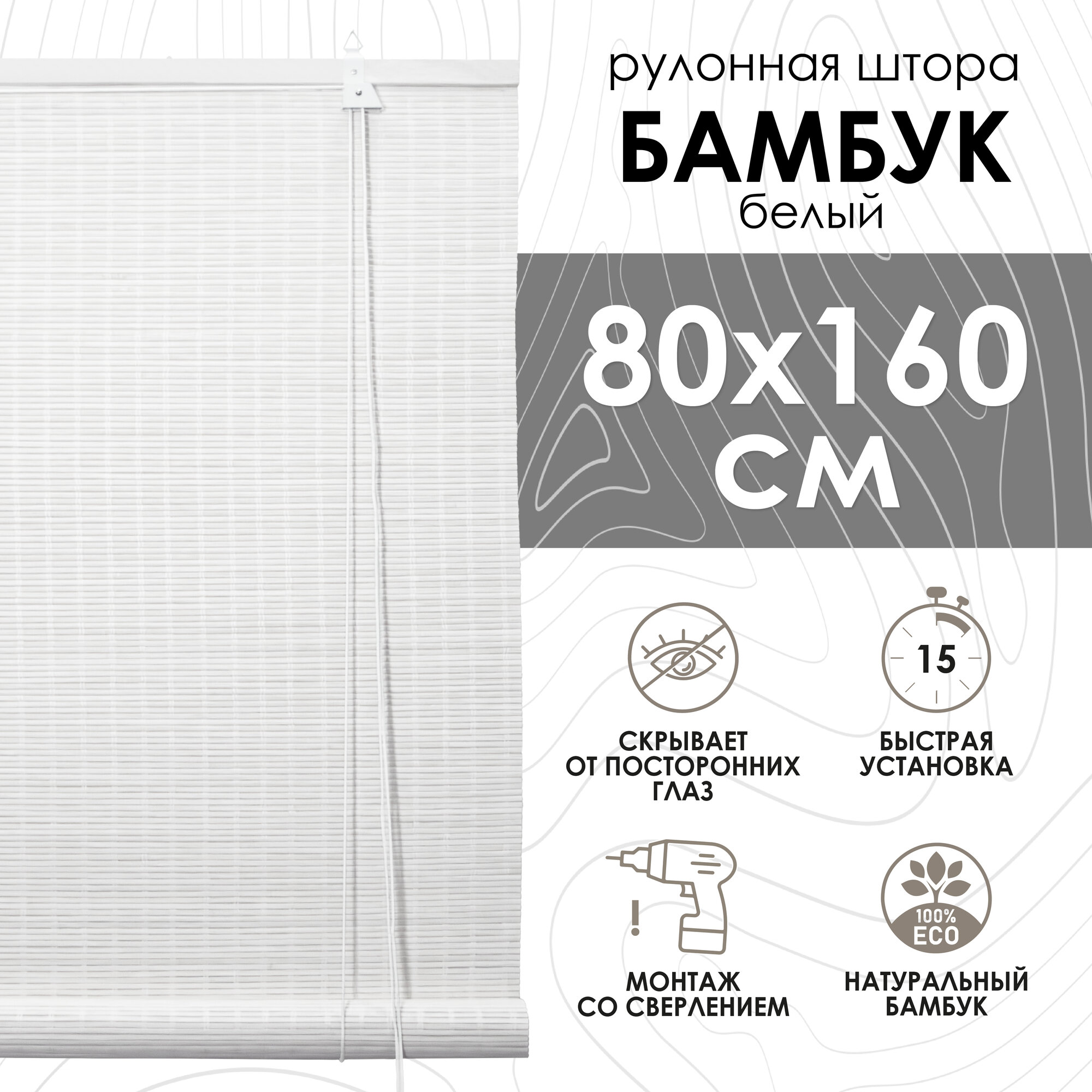 Бамбуковые рулонные шторы, белый, 80х160 интересное: