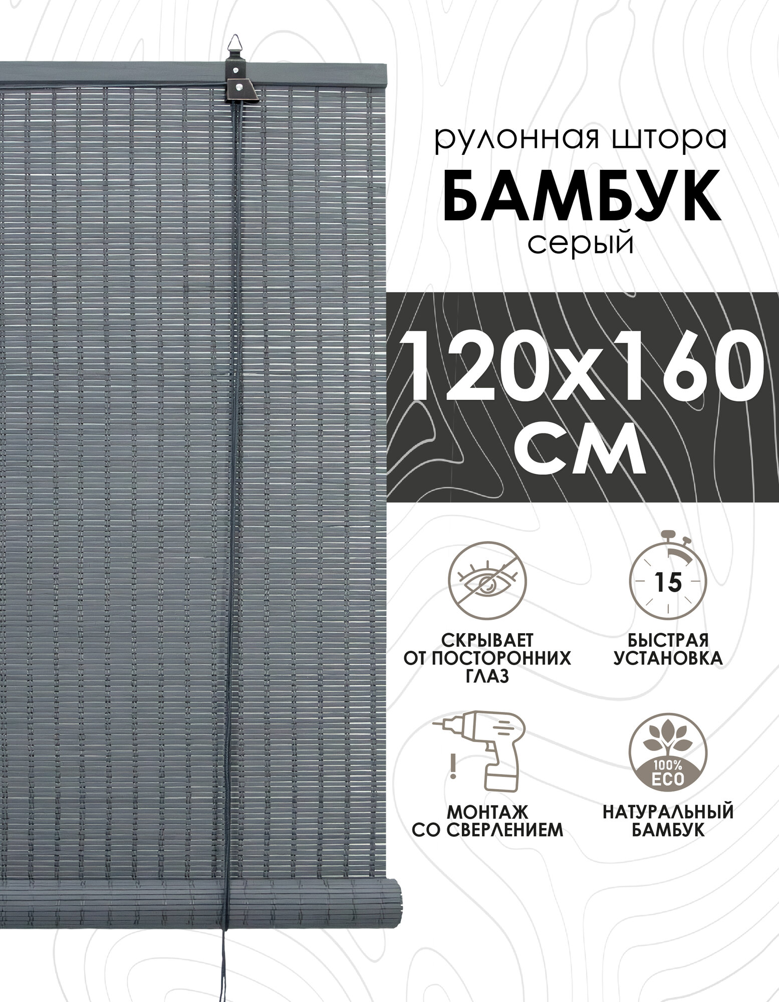 Бамбуковые рулонные шторы, серый, 120х160 интересное: