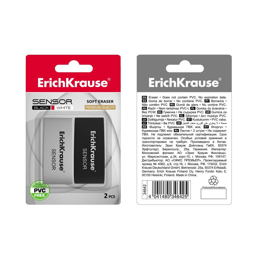 Купить ErichKrause Набор ластиков 2 штуки Erich Krause, SENSOR Black & White, 50 х 18 х 23 мм, мягкие, гипоаллергенные, в блистере