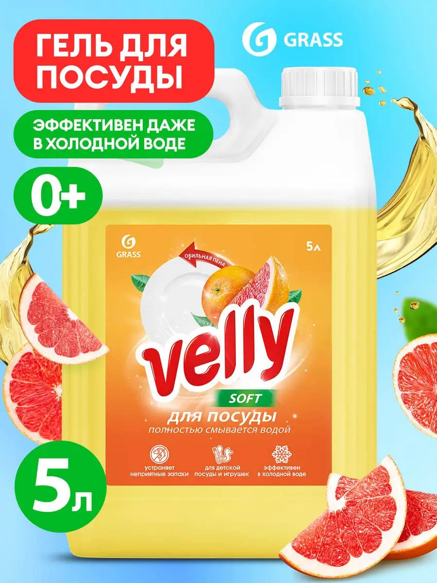Grass Средство для мытья посуды Velly лимон универсальное моющее гель для кухни 5 литров