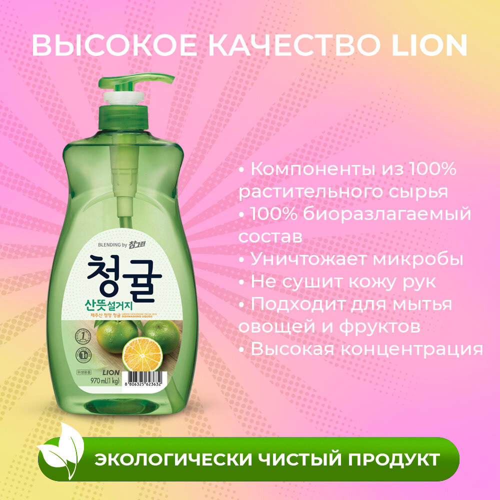Средство для мытья посуды, овощей и фруктов 970 мл, CHAMGREEN зеленый цитрус, Lion, 8806325623649