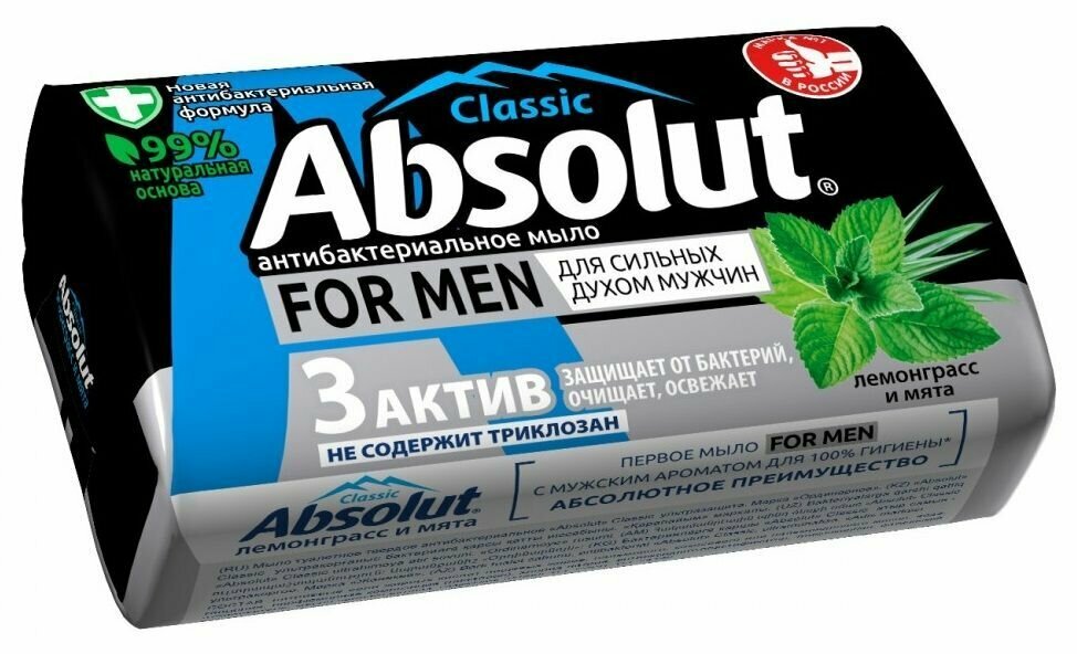 Absolut Мыло For Men Лемонграсс и мята, Антибактериальное 90 гр