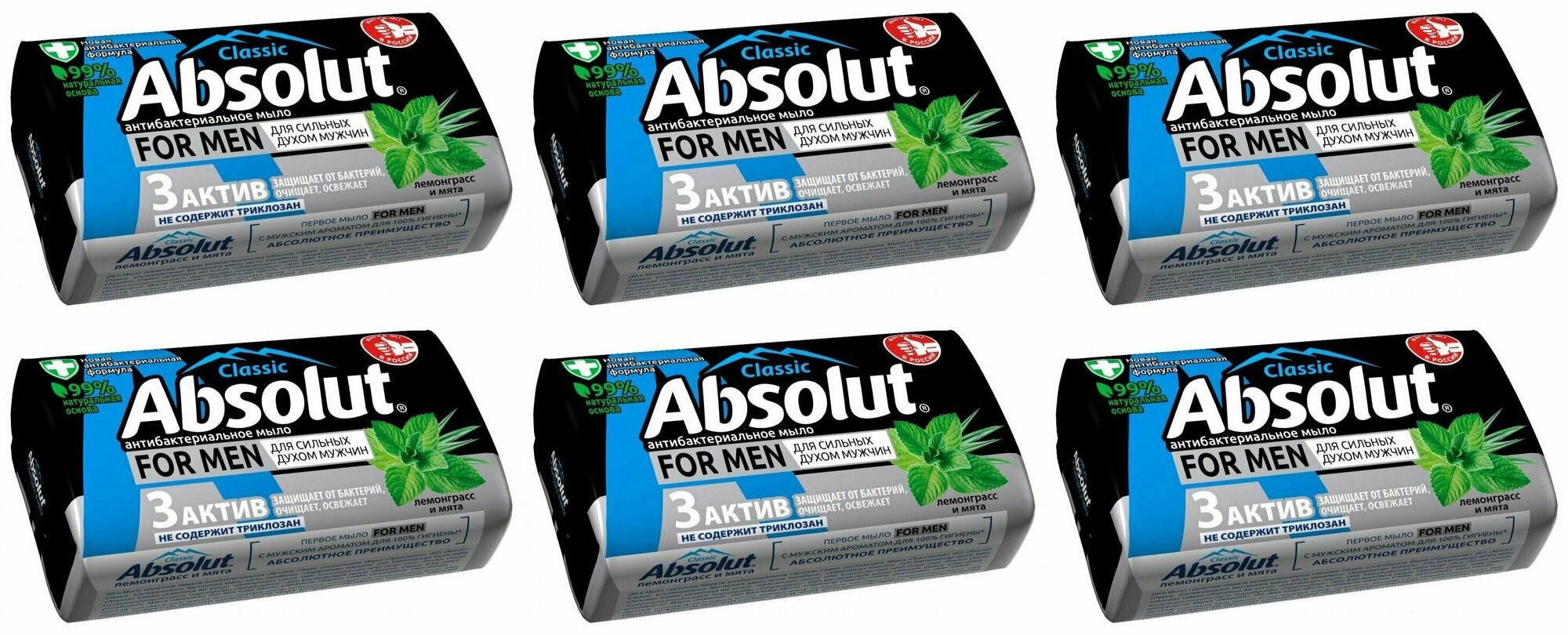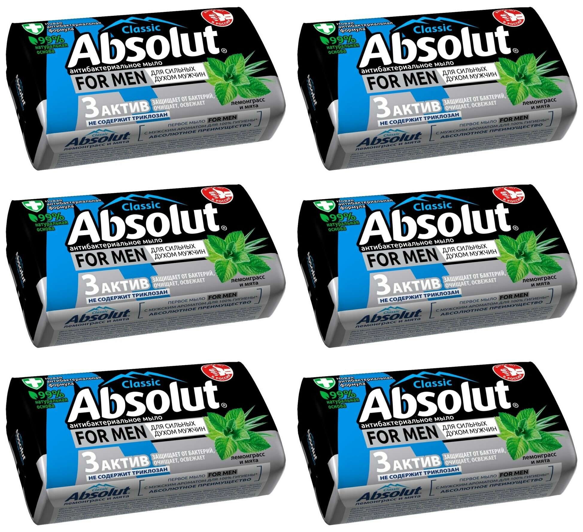 Купить Absolut Мыло Men, Лемонграсс и мята, 90 г., 6 шт.